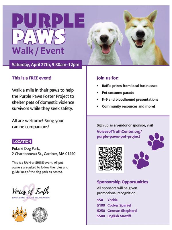 The results are clear – supporting survivors’ safety means supporting their furry loved ones too! That’s why we started the Purple Paws Caregiver Program last year. Check us out in The Gardner News!