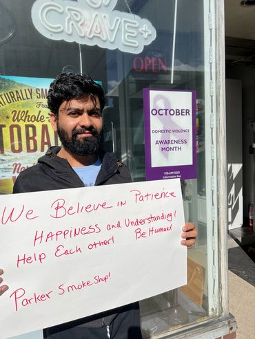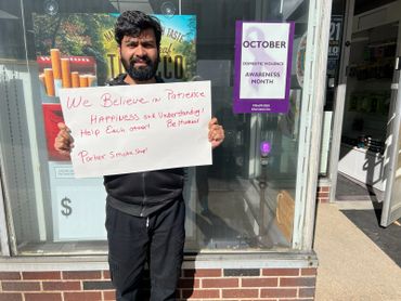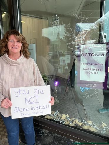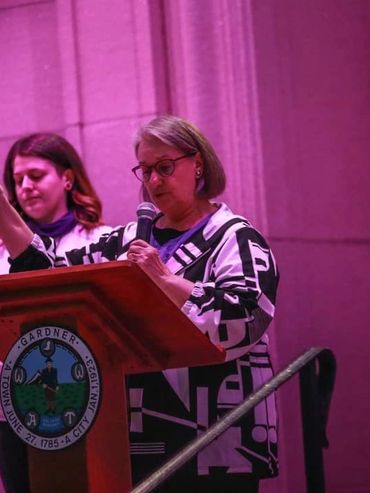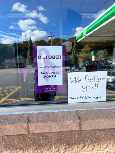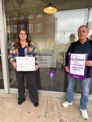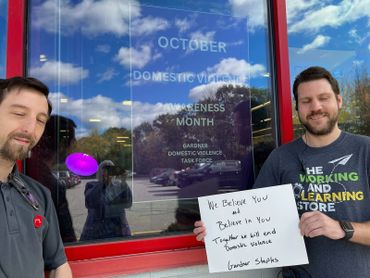 During the month of October, the Gardner downtown businesses put a purple light in their display windows as a message to the victims and survivors showing their support.
