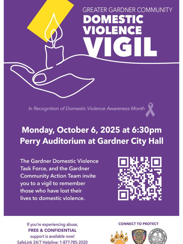 The Gardner Domestic Violence Task Force has various projects that are part of breaking the silence of abuse. We promote healthy relationships during the holiday times. Prepare backpacks for the Police officers when children are present. We are currently working on 911 phones. Purple light campaign for Downtown Gardner and much more